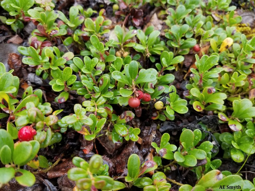 • Arctostaphylos uva-ursi (L.) Spreng. from the Heath (Ericaceae) family, found in all regions of Alaska. Edible, should be used in moderation.