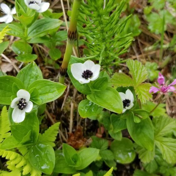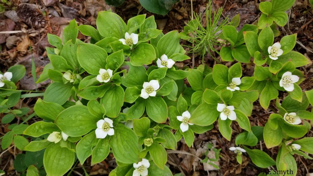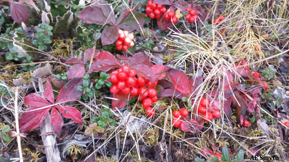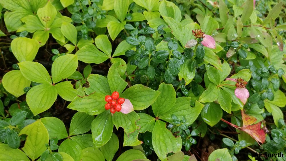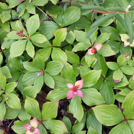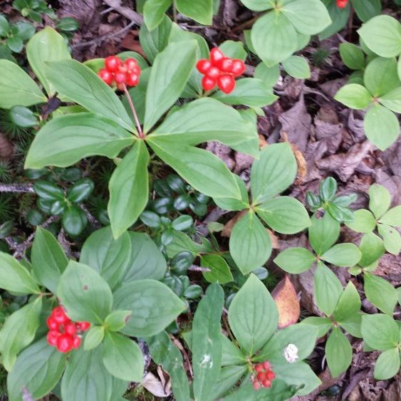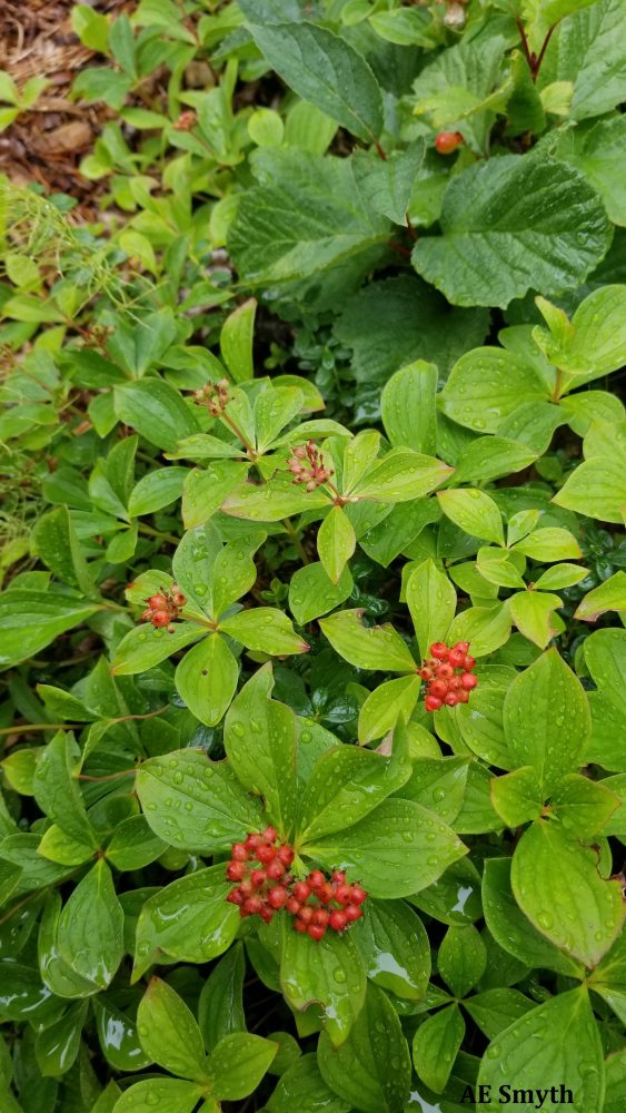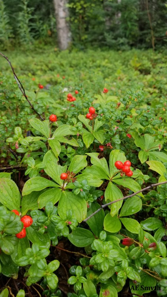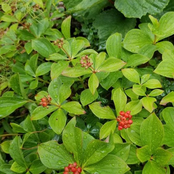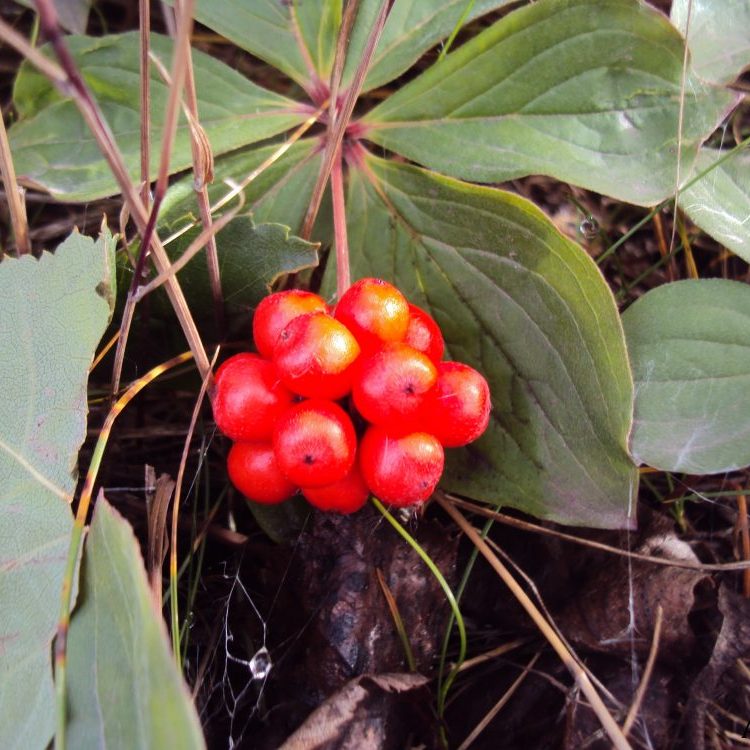 A.K.A. Dogwood / Dwarf Cornel / Dwarf Dogwood / Creeping Dogwood / Puddingberry / Crackerberry / Crackleberry / Crackberry / Air Berry / Ptarmigan’s Flower / Chickenberry / Frogberries / Jacob’s Berry / Jacobberry / Pigeonberry / Дёрен канадский / Дёрен шведский / Ruohokanukka / Hönsbär / Skrubbær / Skollaber / Hønsebær.