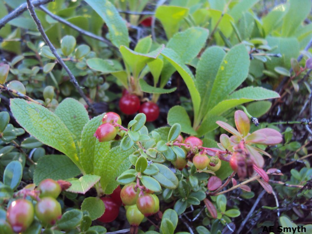 - Arctous rubra (Rehder & E.H.Wilson) Nakai from the Heath (Ericaceae) family, found in all regions of Alaska. Edible raw/cooked.